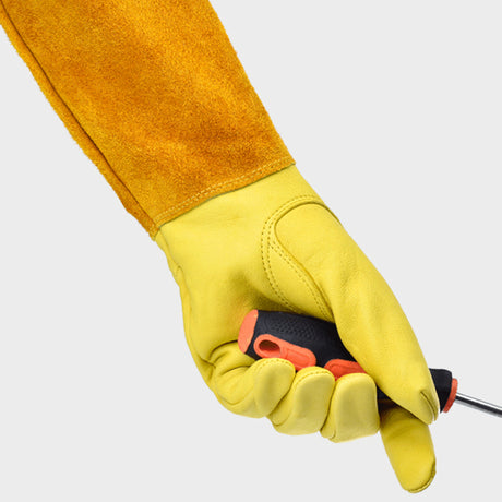 Long Leather Safety Work Gloves with Extended Cuff for Warehouse Maintenance
