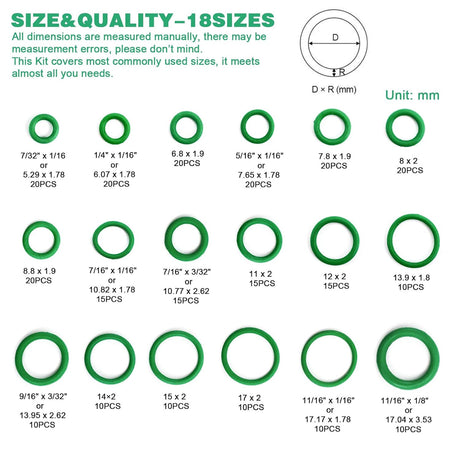 270PCS Automotive Green Rubber O-Ring Seal Repair Kit Set