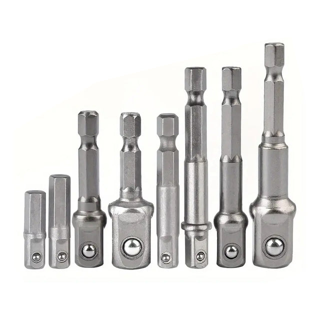 This 8-piece hex shank socket adapter set lets you quickly convert your drill or impact driver into a socket driver, providing versatility for a wide range of fastening tasks. Made from high-quality steel, these adapters withstand high torque and ensure a secure fit. The set supports 1/4", 3/8", and 1/2" sockets, making it suitable for various applications. Spring-loaded ball bearings and chamfered ends provide easy installation and prevent sockets from slipping, offering efficient and reliable performance for both DIY enthusiasts and professionals.