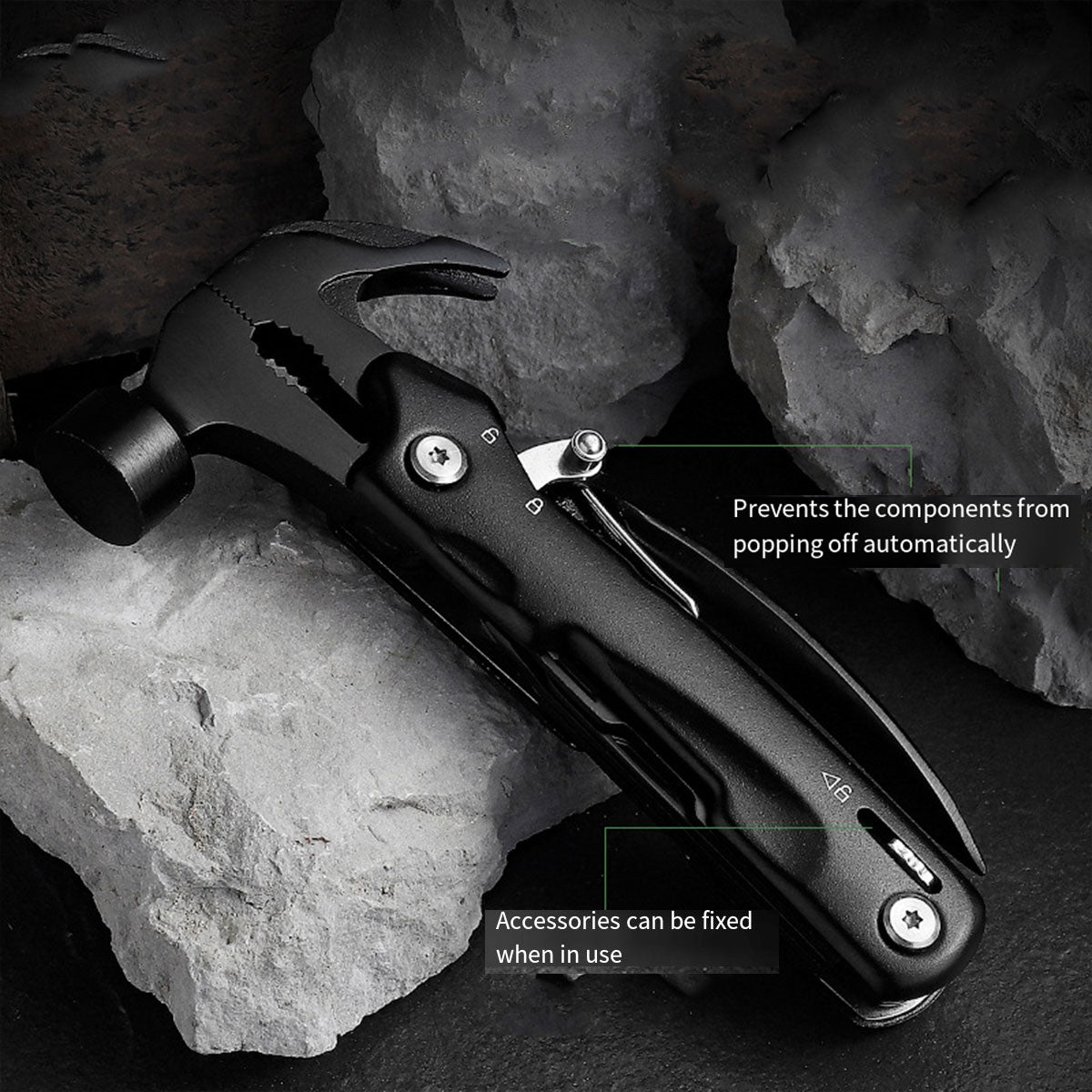 All-in-One Tool: Hammer, pliers, nail lifters, knife, bottle opener, saw, and screwdrivers