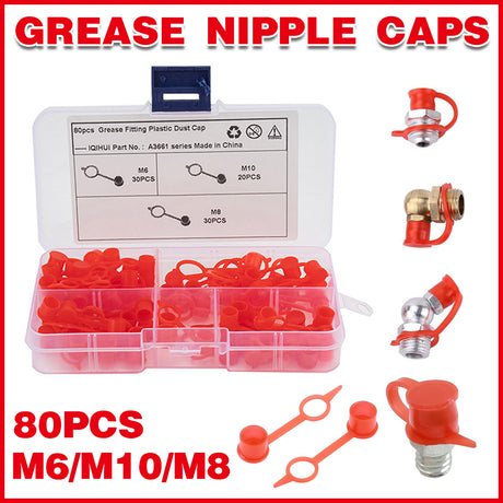 80pcs Grease Nipple Caps M6/M8/M10 Dust-Proof Oil Nozzle Covers