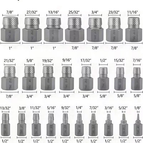 25PCS Damaged Screw Extractor Multi-Spline Easy Out Bolt Remover Set