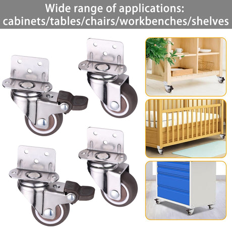 L-Type Cart Casters 90 Degree Right Angle Wheels 4PCS with Brake