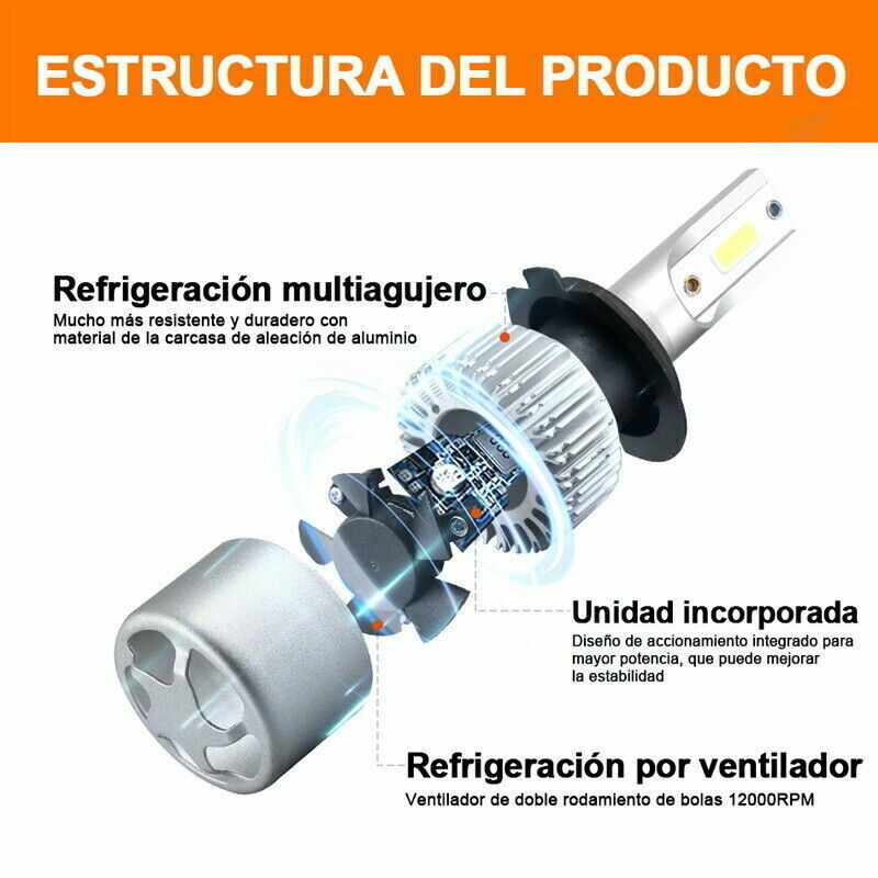 Upgrade your vehicle lighting with this 2PCS H4 LED headlight kit. Designed for both cars and motorcycles, these bulbs offer high and low beam functionality with superior brightness and energy efficiency. Constructed with aluminum and double-sided COB chip LED, they deliver 8000LM of 6000K white light. IP65 waterproof rating ensures reliable performance in all weather conditions, and a lifespan exceeding 50,000 hours makes them a long-lasting lighting solution.