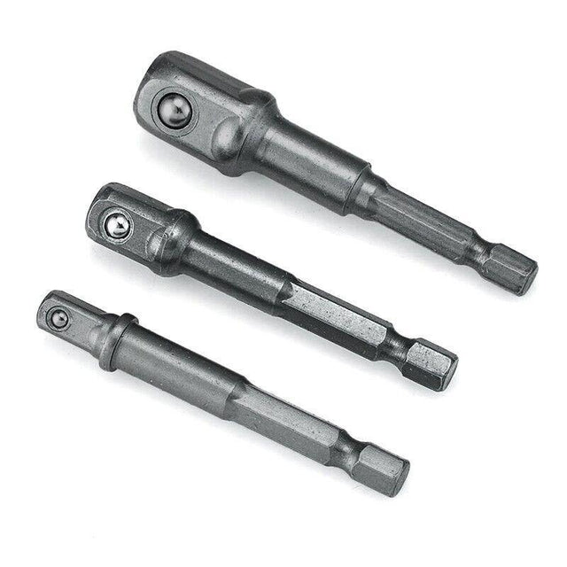 3PC Drill Socket Adapter Hex Drive To 1/4" 3/8" 1/2" Impact Driver