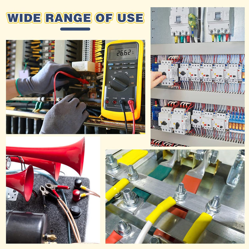 This 720PCS assorted crimp terminals kit includes red, blue, and yellow connectors suitable for automotive and electrical wiring projects. Made from copper, PVC, and tinplate, this kit provides reliable connectivity for various wire sizes. The comprehensive assortment ensures that you have the right connector for any application.
