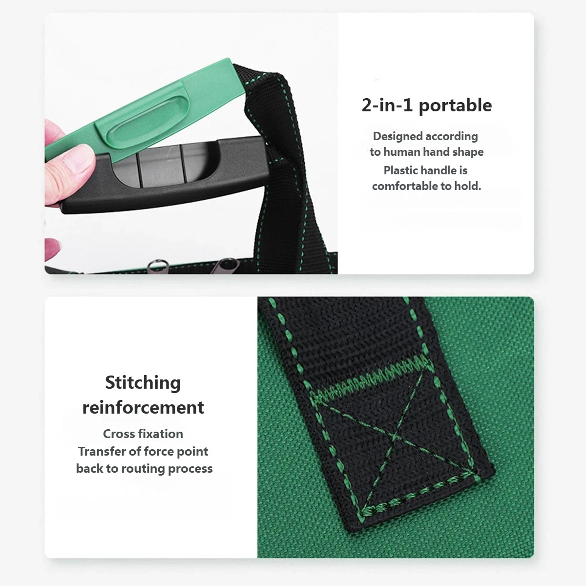 This multifunction tool bag is designed for warehouse maintenance personnel, technicians, and logistics facility operators who require durable and organised tool transport. Built to perform in demanding industrial environments, the tote features a solid engineering plastic hard bottom that provides enhanced durability and protection when placed on rough warehouse floors or work surfaces. The large-capacity interior allows efficient storage of essential hand tools and maintenance equipment, supporting routine warehouse servicing, shelving installation, and logistics facility repair tasks.