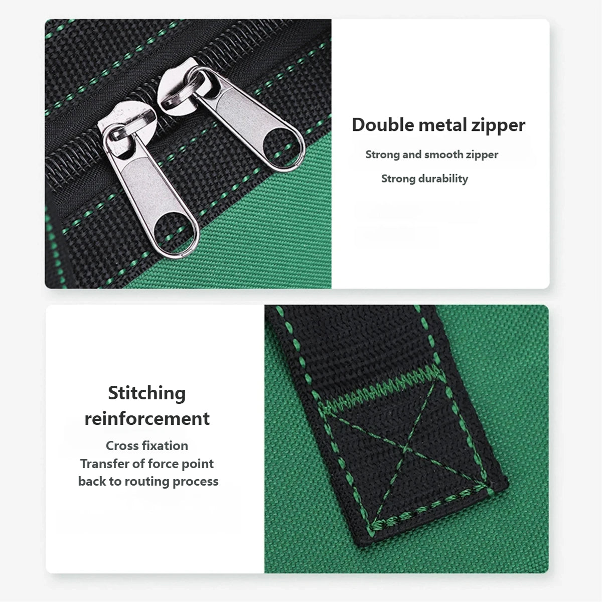 The reinforced hard bottom helps protect tools when the bag is placed on rough warehouse or industrial floor surfaces.