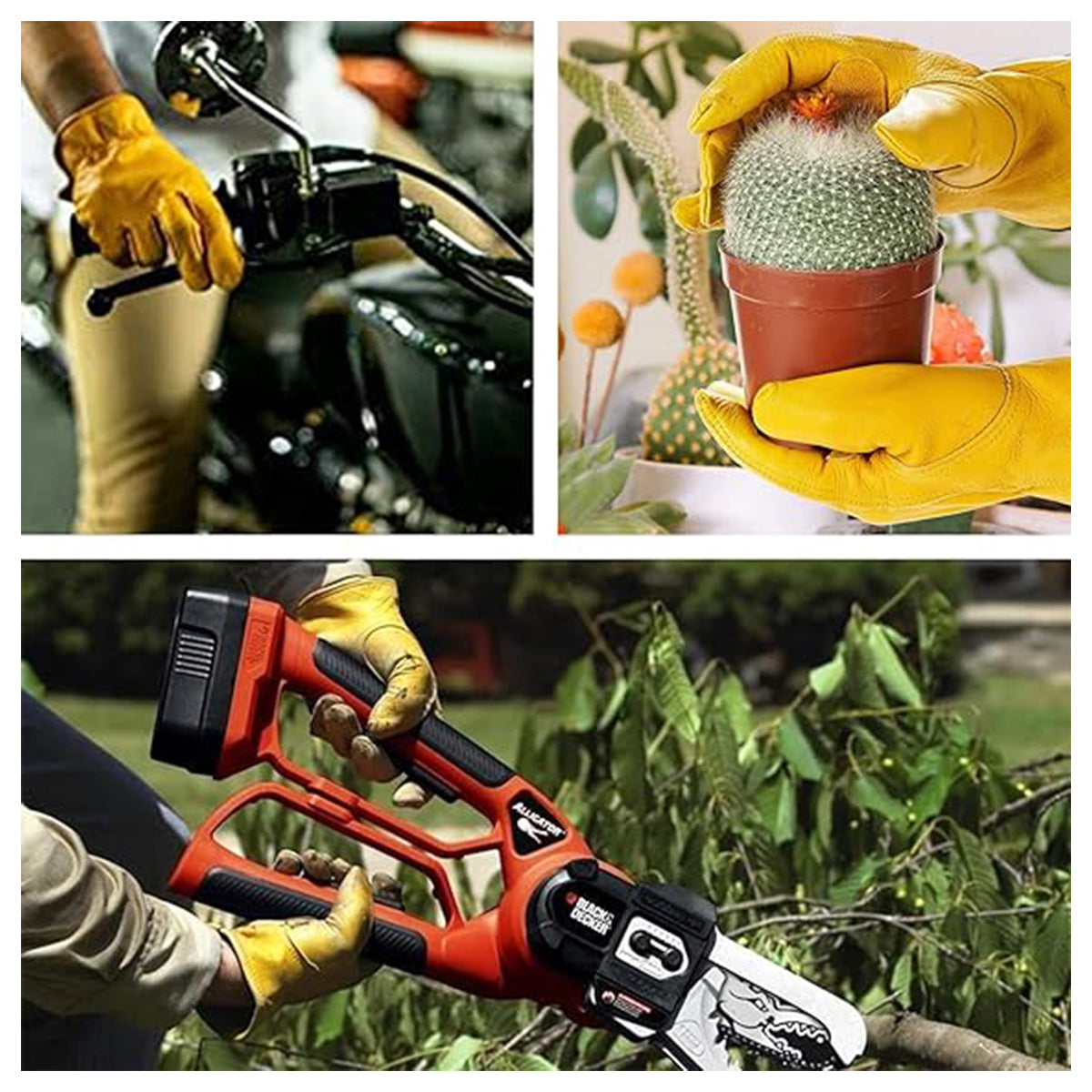 Golden Yellow Cowhide Full Finger Work Gloves for Warehouse Maintenance - M is backordered and will ship as soon as it is back in stock.