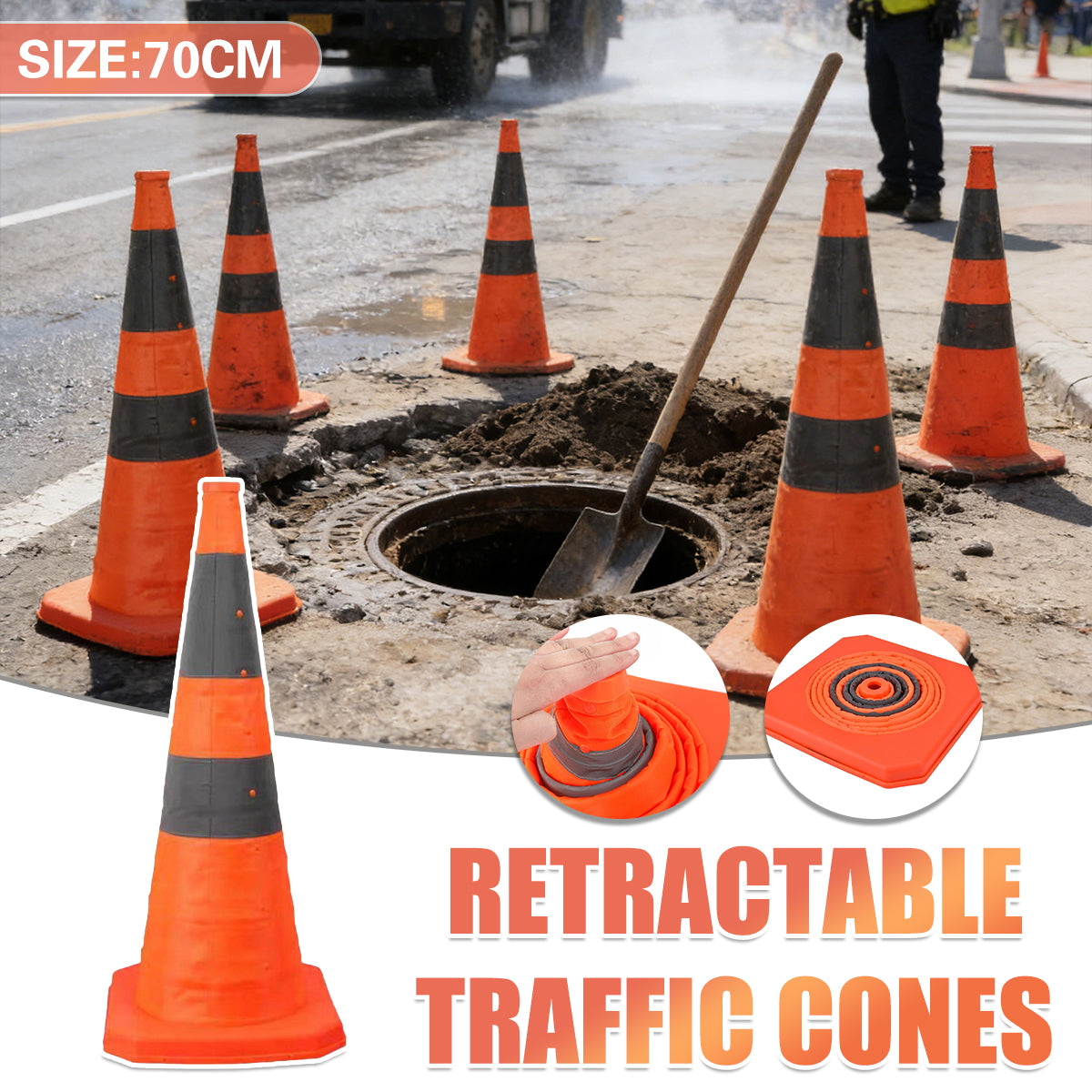 Portable Retractable Traffic Warning Cone Reflective Safety Collar