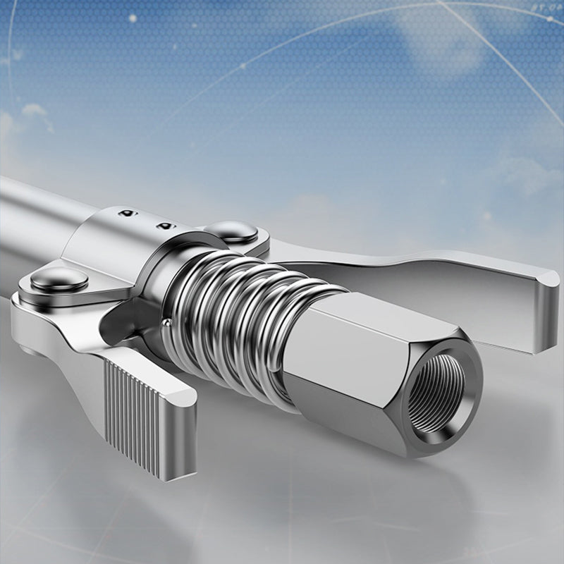 This heavy-duty grease tool coupler is designed for efficient, leak-free lubrication, delivering stable performance even under high pressure. Built with enhanced sealing and a durable stainless-steel body, it ensures smooth and reliable grease application for machinery maintenance, automotive service and industrial use. The double-handle structure allows easy operation while providing better grip and preventing accidental slips.