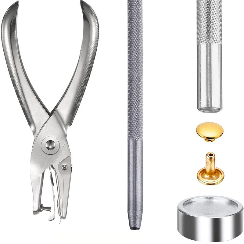 Complete kit: 480 sets of rivets, punch tools, base, pliers, and storage box