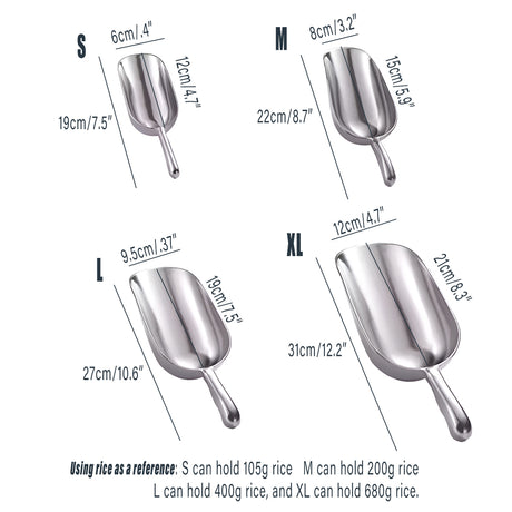 4 Sizes Aluminum Alloy Ice, Flour Rice Scoops Multipurpose