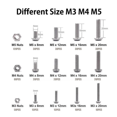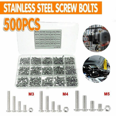 Regular price $9.77Unit price /Unavailable 500PCS M3 M4 M5 Stainless Steel Hex Socket Head Bolts Screws Nuts Kit