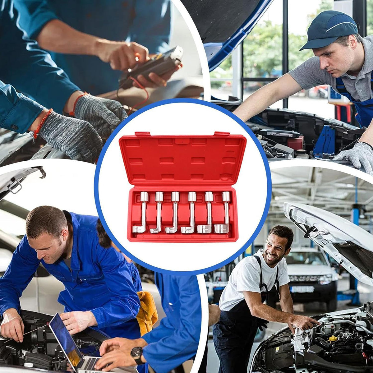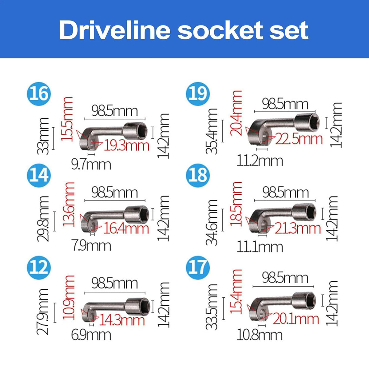 This 6-piece L-shaped hexagon wrench set is engineered for professional and DIY automotive repair, driveline maintenance, and mechanical service. Manufactured from heat-treated CR-MO steel, the wrenches deliver exceptional hardness, wear resistance, and torque performance. The set includes 12, 14, 16, 17, 18, and 19 mm sizes to cover common maintenance requirements, while the L-shaped configuration improves leverage and access in restricted engine areas. All tools are packaged in a compact red case measuring 26 × 4.5 × 12.7 cm, supporting secure storage and transport in workshops, toolboxes, or service vehicles.