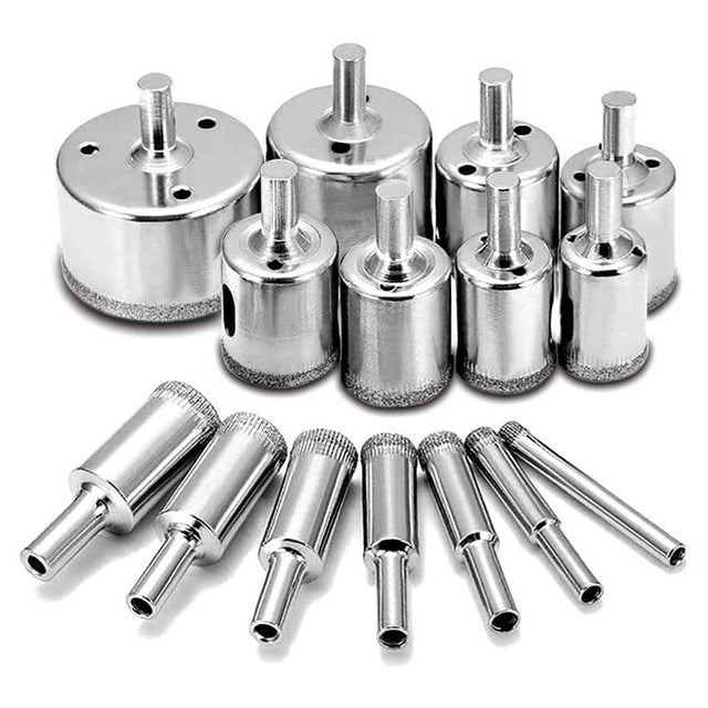 Achieve precise, clean holes effortlessly with this 15PCS Diamond Drill Bit Set, designed for drilling through glass, tile, marble, ceramic, and stone. Made from high-strength carbon steel with a smooth nickel-plated surface, these bits deliver durability and precision. Perfect for both DIY enthusiasts and professionals, they offer a sharp cutting edge and smooth finish for efficient drilling with minimal resistance.